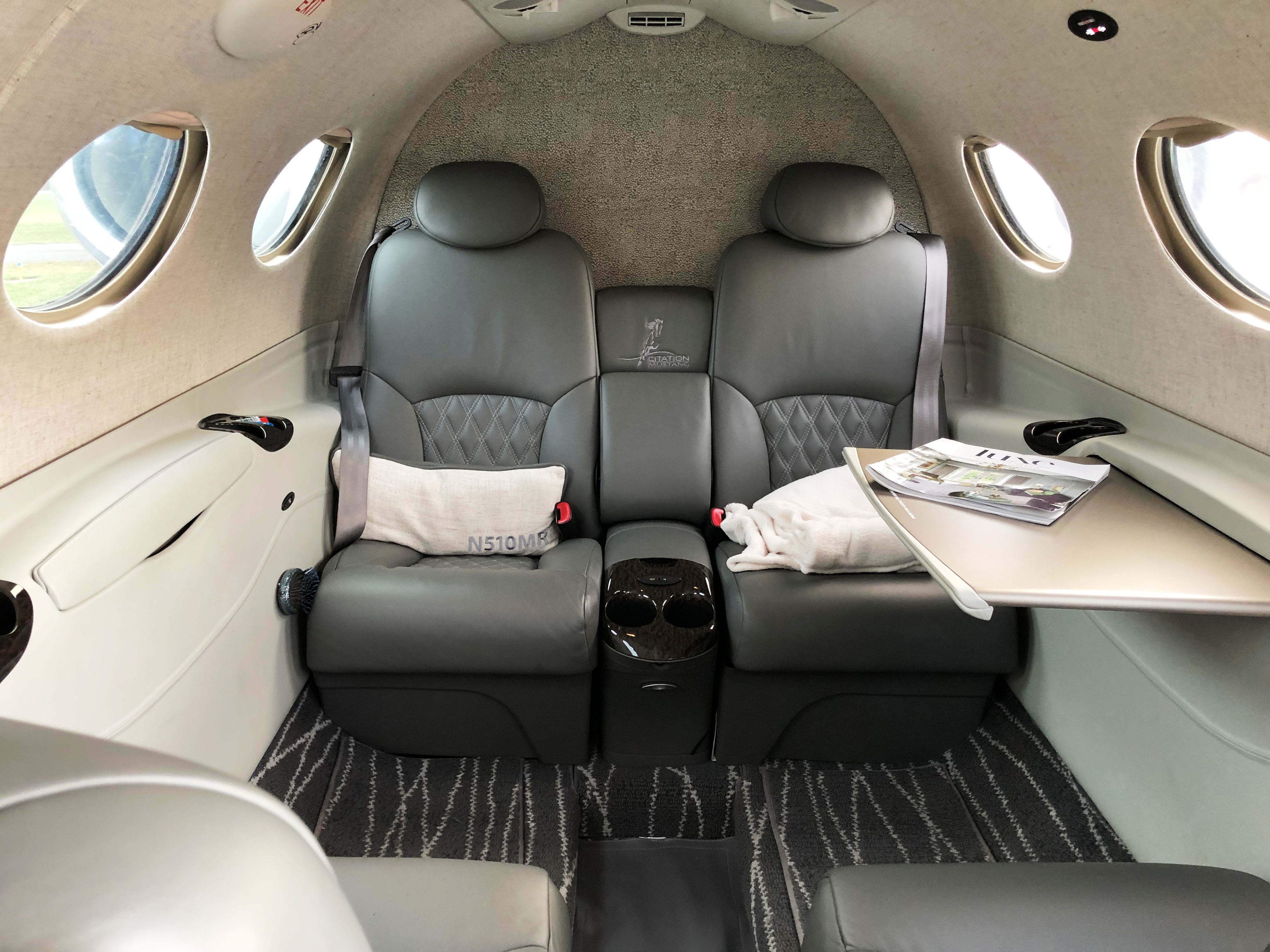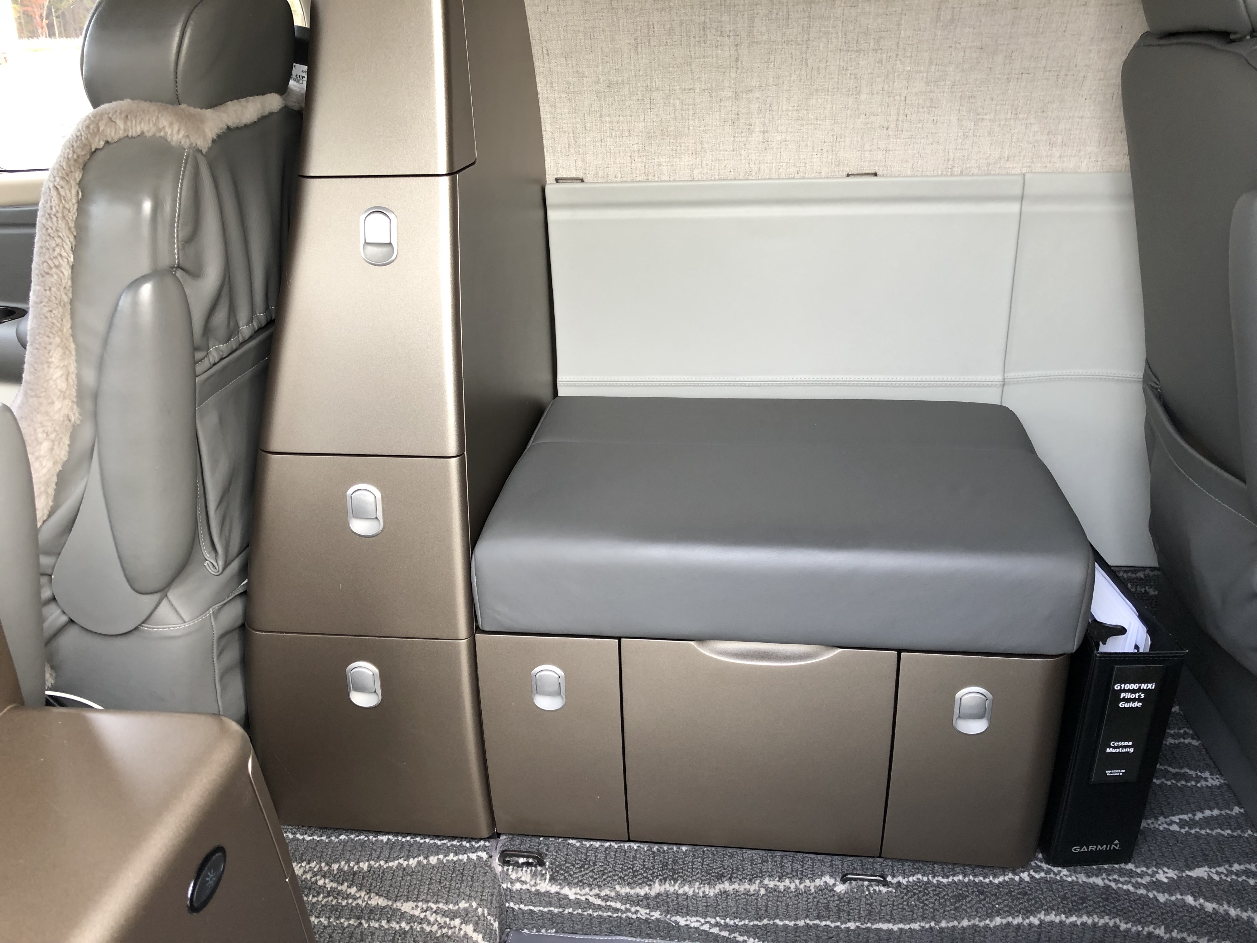 | Interior | : | Custom interior by Cessna Service Center (2020). Premium CJ3+ materials. Gray Leather with Quilted Pattern cushions and Crew Sheepskin inserts. Gray Carpet with Wavy Striping. Vinyl Carpet Runner. Forward Potty Seat.
